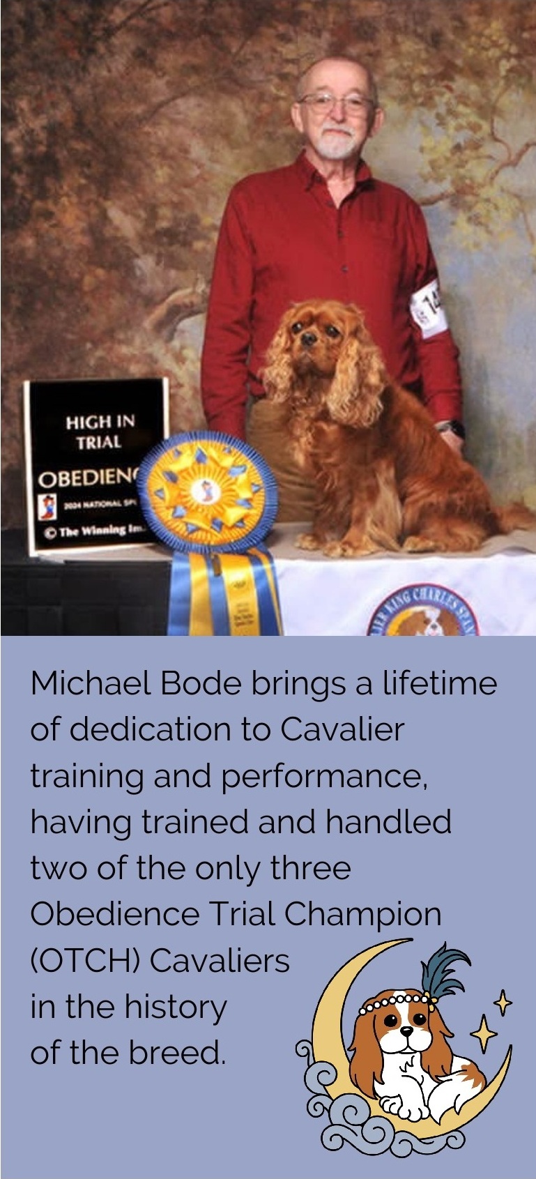Join us for an enjoyable and informative session that will help strengthen your skills, deepen your connection with your Cavalier, and put joy back into obedience training. This hands-on seminar designed to bring the fun back to training for both exhibitor and dog. Michael will focus on building confidence, motivation, and teamwork through: